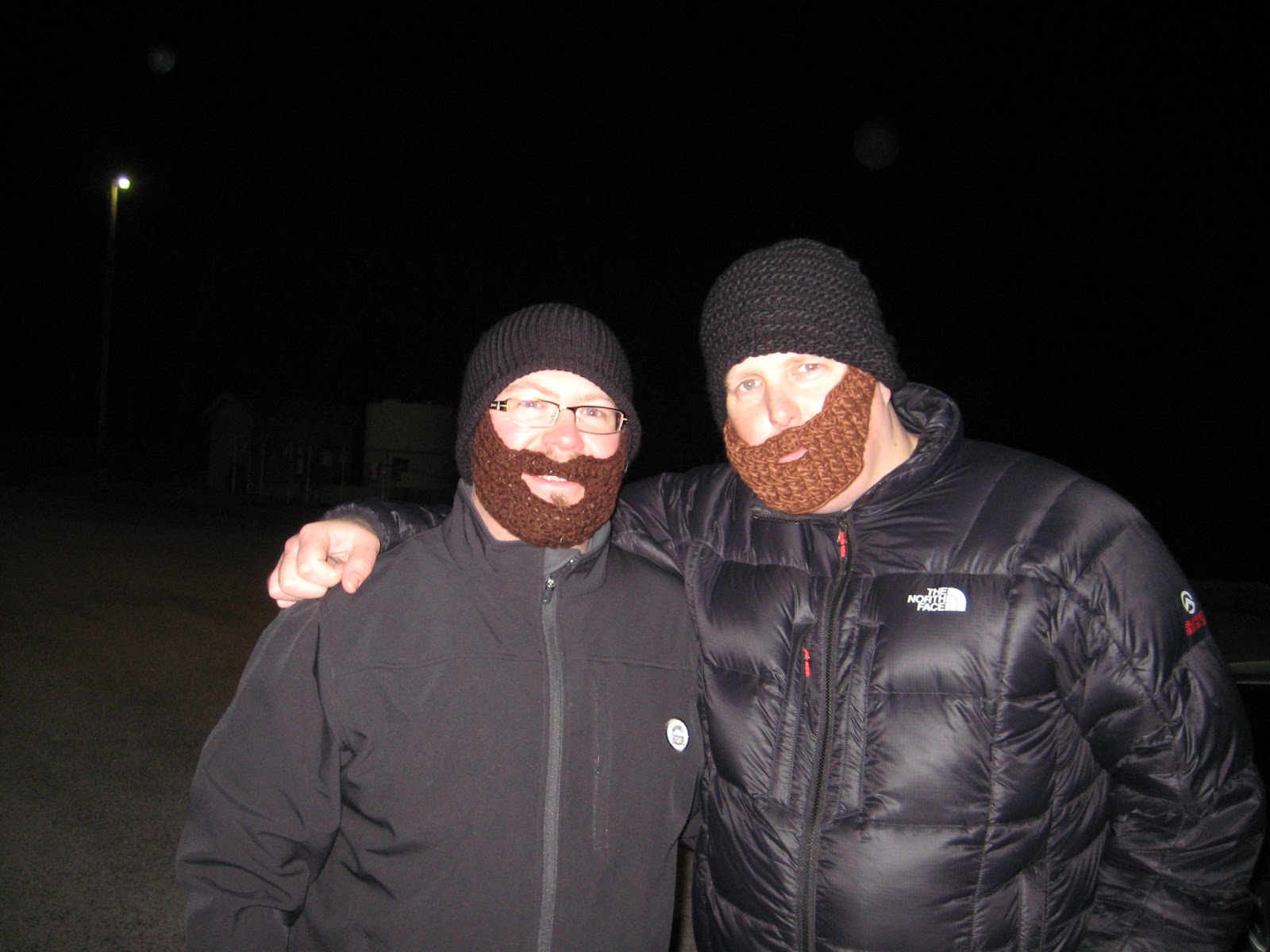 | A last minute gag gift from Mrs. Chase to the best buds. I guess Mrs. Chase won't allow Mr. Chase to grow a real beard so this is the next best thing. Beirdo Men! |